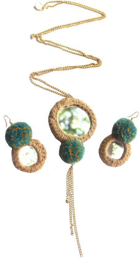 Fabric Turquoise, Beige Jewel Set (Pack of 1)