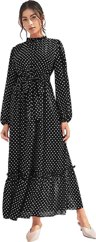 Polka Print Georgette Stitched Flared/A-line Gown (Black)