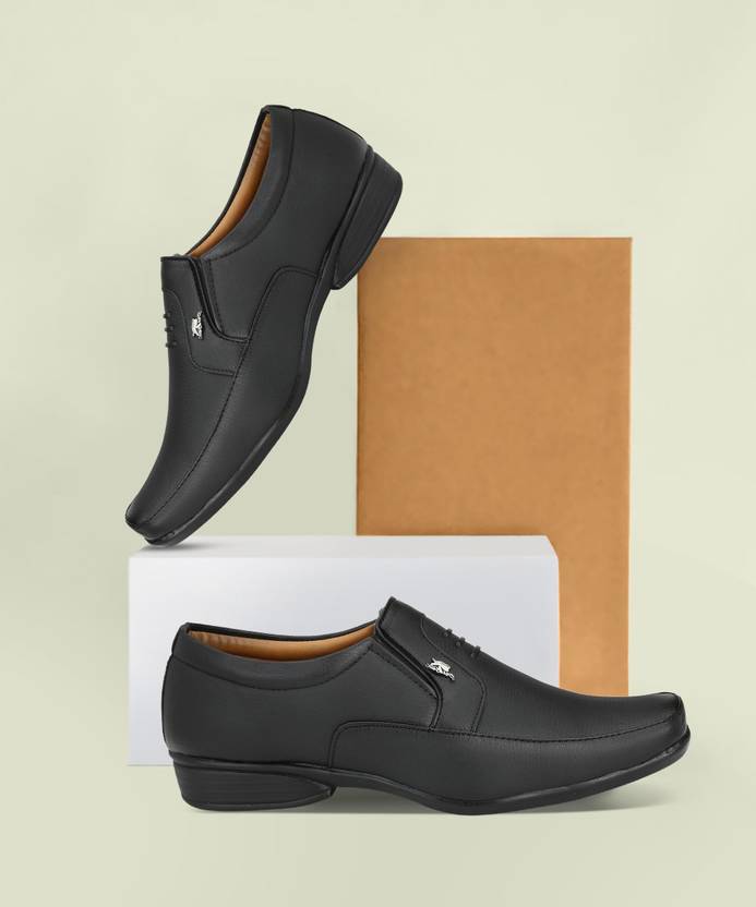 Synthetic Leather Black Formal Office Shoes Slip On For Men (Black , 8)