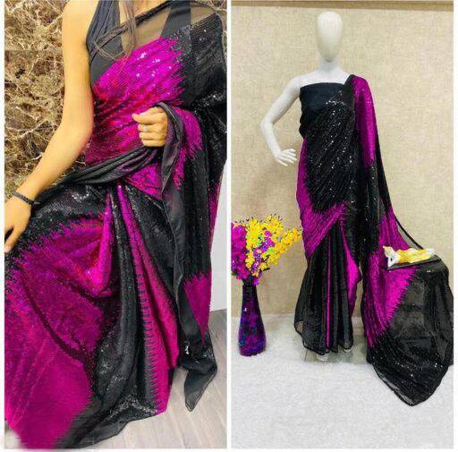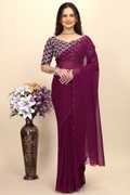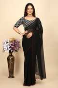 Designer embroidered all over blouse piece with elegant plain pure georgette saree