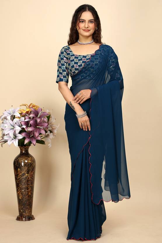 Embroidered Bollywood Georgette Saree (Dark Blue)