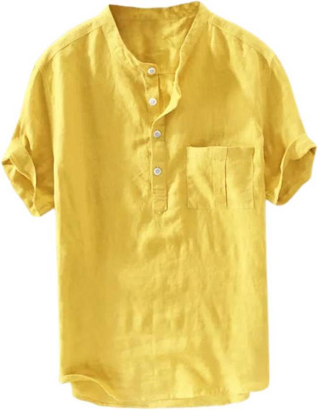 Men Solid Cotton Blend Straight Kurta (Yellow)