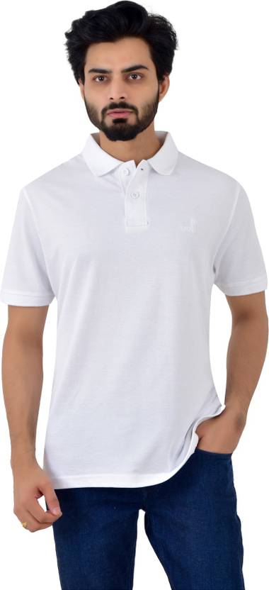 Men Solid Polo Neck Organic Cotton White T-Shirt