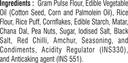 Flavor | - Gram Pulse Flour,Split Red Lentil, Pea Nuts,Rice Flour, Edible Vegitable Oil(Cotton seed, Corn and Palmolein Oil), Iodised Salt, Black Salt,Red Chilli, Clove Powder, Nutmeg Powder, Mace Powder,Black Pepper, Cardamom Powder,Dry Ginger Powder, Asafoetida Powder Amchur,Seasoning , Spices and Condiments,Acidity Regulator(INS330),and Anticaking Agent(INS 551)