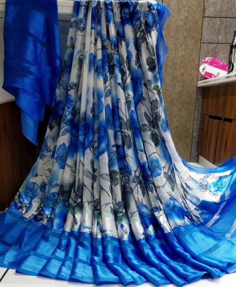 NEW SAREE COLLECTION 2022 GEORGETTE CHIFFON LYCRA NET FREE DENIM