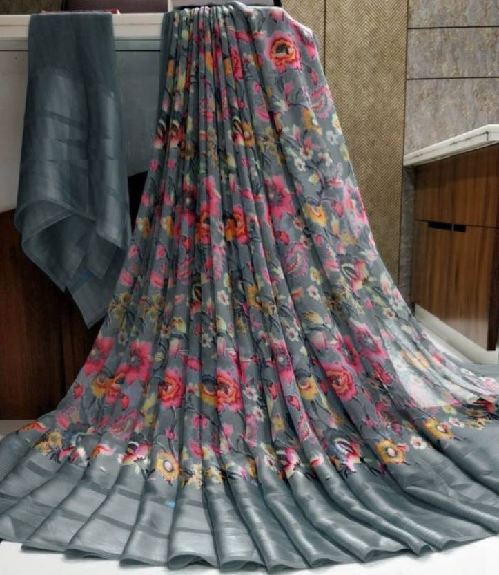 Yashvicreation Printed Bandhani Georgette Saree (Grey)