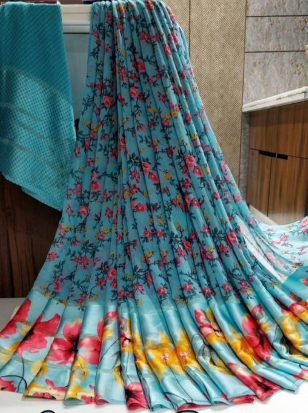 NEW SAREE COLLECTION 2022 GEORGETTE CHIFFON LYCRA NET FREE DENIM