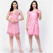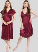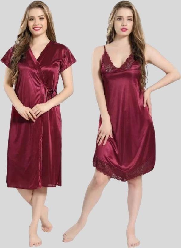 Bombshell Pack of 2 Women Nighty with Robe (Maroon)