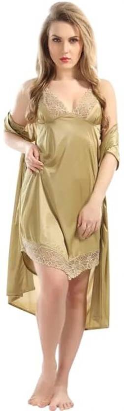 Bombshell Pack of 2 Women Nighty with Robe (Gold)