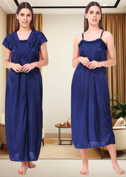 Pack of 2 Women Nighty with Robe (Dark Blue)