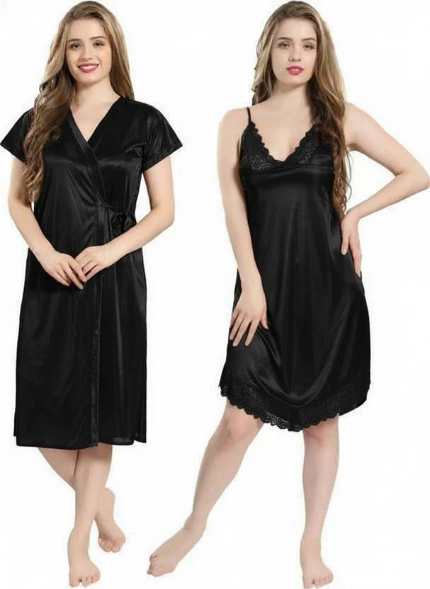 Bombshell Pack of 2 Women Nighty with Robe (Black)