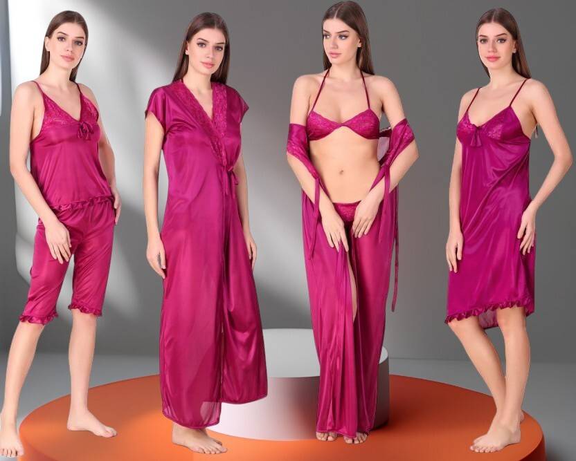 Bombshell Women Solid Purple Night Suit Set