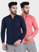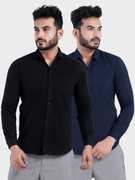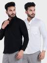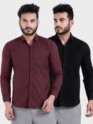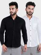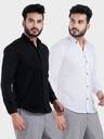 BONCUE Men Solid Casual Black, White Shirt (Pack of 2)