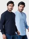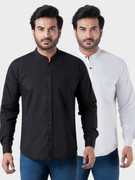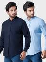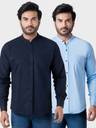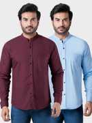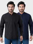 Men Slim Fit Solid Mandarin Collar Casual Shirt (Pack of 2)