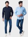BONCUE Men Solid Casual Dark Blue, Light Blue Shirt (Pack of 2)
