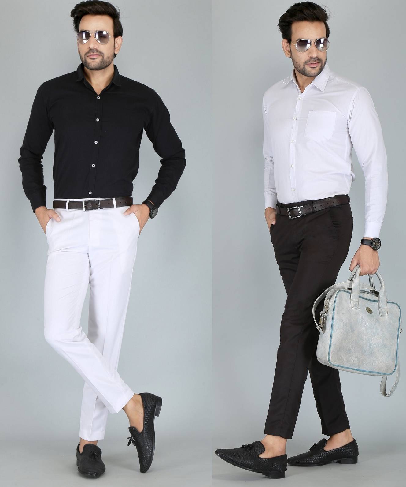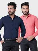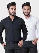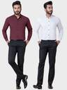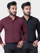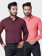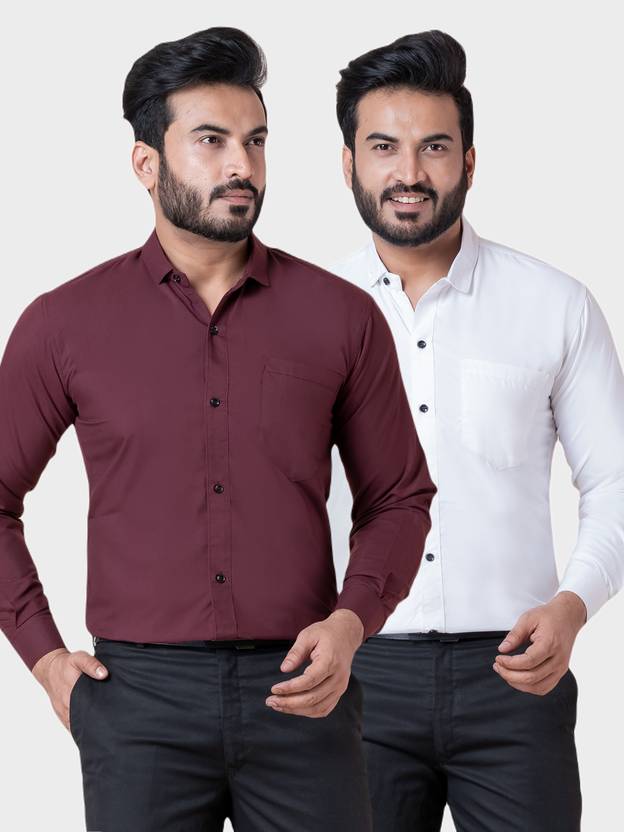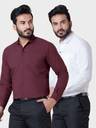 BONCUE Men Solid Formal Maroon, White Shirt (Pack of 2)