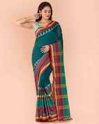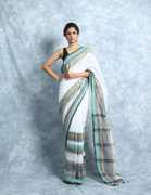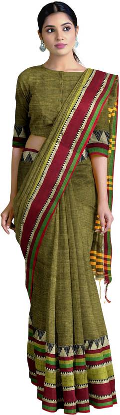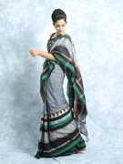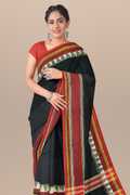 This is Madhubani woven saree with Large Borders. The body of the saree is woven with mostly cotton blend threads and the Border is woven with Silk.