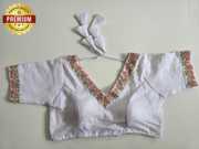 Add elegance to your ethnic collection with this beautifully crafted Bichitra Silk blouse featuring intricate multicolor floral embroidery on the neckline and sleeves. Designed with a deep V-neck and stylish back tie tassels, this blouse blends traditional charm with modern appeal. Perfect for pairing with sarees and lehengas, it offers a comfortable fit and premium stitching, making it an excellent choice for weddings, festive occasions, and parties.