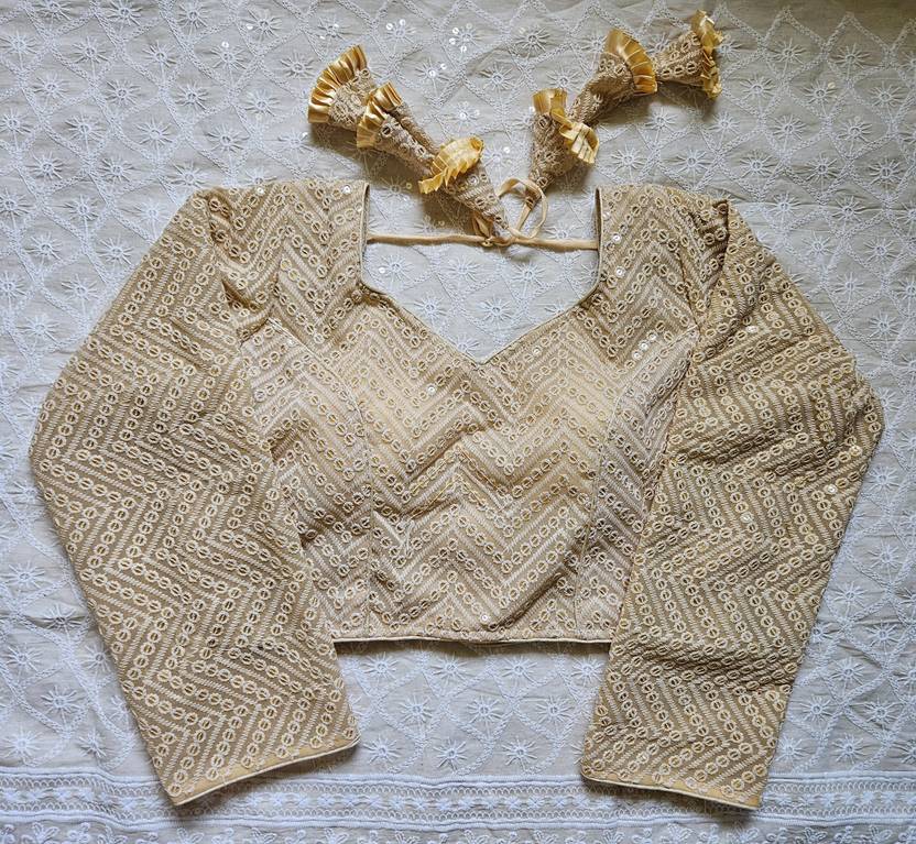 This full-sleeve chikankari alterable blouse is a versatile and elegant piece of clothing, perfect for various occasions. Chikankari is a traditional form of embroidery from Lucknow, India, known for its intricate and delicate patterns.