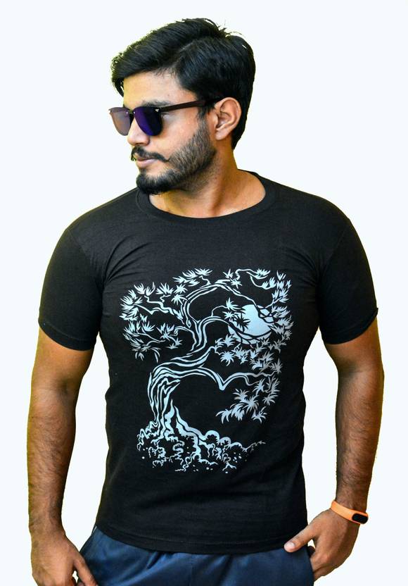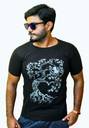 Men Graphic Print Round Neck Cotton Blend Black T-Shirt
