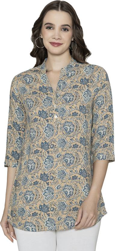 Women Printed Viscose Rayon Straight Kurta (Beige)