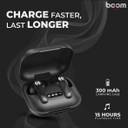 The earbuds (35 mAh battery in each earbud) and the charging case (300 mAh battery) let you enjoy a combined playback time of up to 15 hours, enabling you to listen to songs, podcasts, and more for long hours.