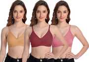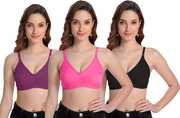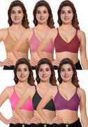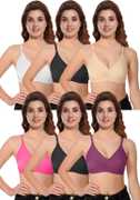 BOOMSHY Women's Comfort Bra For Everyday Combo Pack of 6 Single Layered Women Full Coverage Non Padded Bra (Multicolor)