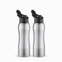 BOROSIL Grip N Sip Single Wall Bottle 750 ml Steel Bottle (Pack of 2, Steel/Chrome)
