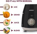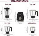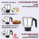 Introducing the Infinity Mixer Grinder – your ultimate kitchen companion for wet & dry grinding and blending. With a powerful 750 W turbo motor and three stainless steel jars (1.5 L Jar with Fruit Filter, 1.5 L blending, 1.0 L dry/wet grinder, and 400 ml chutney grinder), this appliance is built to handle all your culinary needs. Its dual-color ABS body, anti-skid vacuum rubber feet, and superior stainless steel blades ensure durability, stability, and efficient performance. With three speed options, pulse function, and lid rings to prevent leakage, it offers precise control and mess-free operation. The Infinity Mixer Grinder is designed for your convenience, featuring a 25-minute continuous grinding time, overload protector for motor safety, and dishwasher-safe removable parts. Upgrade your cooking experience today.
