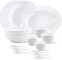 BOROSIL Pack of 33 Ceramic Larah By Borosil - Orbit Series Opalware Dinner Set (White, Microwave Safe)