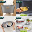 BOROSIL Pro Daisy Glass Lunchbox, Set of 4 (320ml x 2 Square + 240ml x 2 Round) 4 Containers Glass Office Lunch Box (1120 ml)