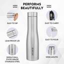 BOROSIL Swan Stainless Steel Single Wall 1 L Water Bottle, Wide Mouth, BPA Free, Silver 1000 ml Steel Bottle (Pack of 1, Steel/Chrome)
