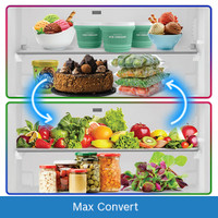 With the Max Convert functionality of this refrigerator, you can transform your freezer into a refrigerator with a gentle button push. In around 90 minutes, this option adds up to 82 litres of additional refrigerator capacity.
