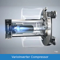 The VarioInverter compressor of this refrigerator efficaciously modifies its speed depending on the environmental conditions and refrigerator load, thereby consuming energy efficiently.
