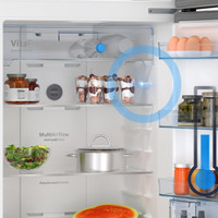 The MultiAir Flow technology in this appliance has strategically placed air vents designed to ensure even cooling throughout the entire refrigerator. This consistent temperature helps to improve the freshness of food items by reducing condensation and moisture build-up within the fridge. With MultiAir Flow, your food will stay cooler, crisper, and better preserved, regardless of where it is placed on the shelves. This technology aims to optimise storage conditions and extend the life of your groceries.