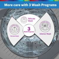 This semi-automatic washing machine is equipped with 3 pre-programmed options – Normal wash, Delicate wash, and Intense wash. These options can help you wash any type of fabric, ranging from your daily wear clothes to household fabrics like bedsheets or curtains and more.