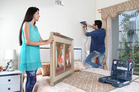 You can use the drill and accessories such as spirit level, screws and nylon fixings while you are hanging a new painting in the living room. The spirit level can be used to see if the painting or the wall fixture is in level.