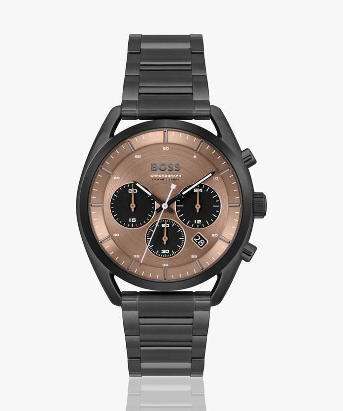 BOSS continues to make its presence felt in the sporting world with the introduction of the BOSS Top, an innovative watch to accessorize the brand's sports looks. This chronograph with date function has a unique case with integrated lugs for a seamless outline, and is fitted with a sporty silicone strap with fabric inlay.
