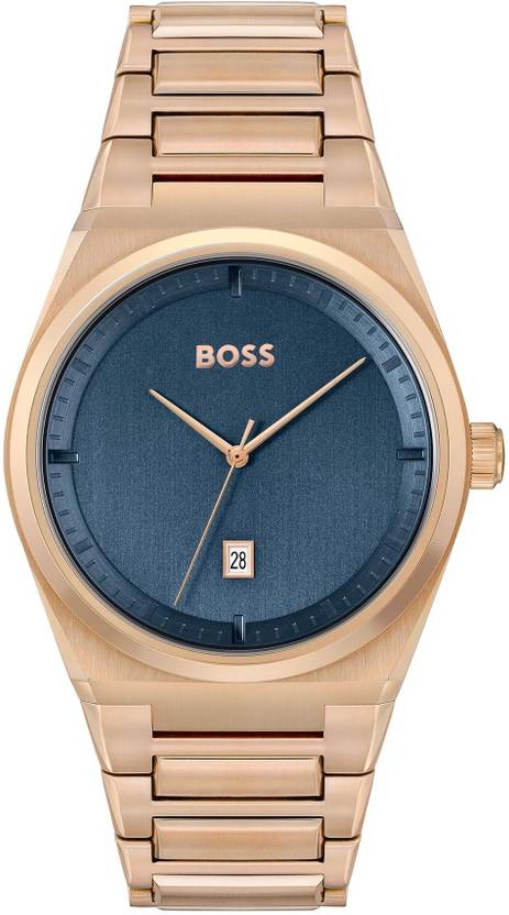 The BOSS man leads a self-determined life, always moving forward with clarity and confidence. The Bauhaus-inspired BOSS Steer reflects his focused attitude in its pared-back design, with seamless case-bracelet integration through chamfered lugs and links. This three-hand watch with date function features a vertically brushed dial, framed by a stamped-down minute track and minimalist indexes, while slim, polished hands add signature BOSS elegance.