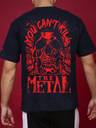 The T-shirt features a bold metal-inspired graphic with striking red text and a skull motif. The front has a spiky Slipknot-style logo, while the back dramatically proclaims "YOU CAN'T KILL THE METAL" in large distressed red print, centered around a skull illustration. The design and oversized fit give it a strong heavy metal streetwear vibe, ideal for fans of rock/metal bands or alternative fashion.Designed for daily wear, this versatile garment suits various occasions—be it lounging at home, heading to the gym, or stepping out for a casual meet-up. Made from high-quality cotton or cotton-blend fabric, men’s t-shirts offer breathability, softness, and lasting durability. Available in various styles including round neck, V-neck, and crew neck, they come in plain, printed, or graphic variants to match individual fashion preferences.