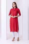 BoutiQO Women Polka Print Straight Kurta (Maroon)