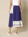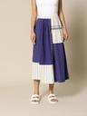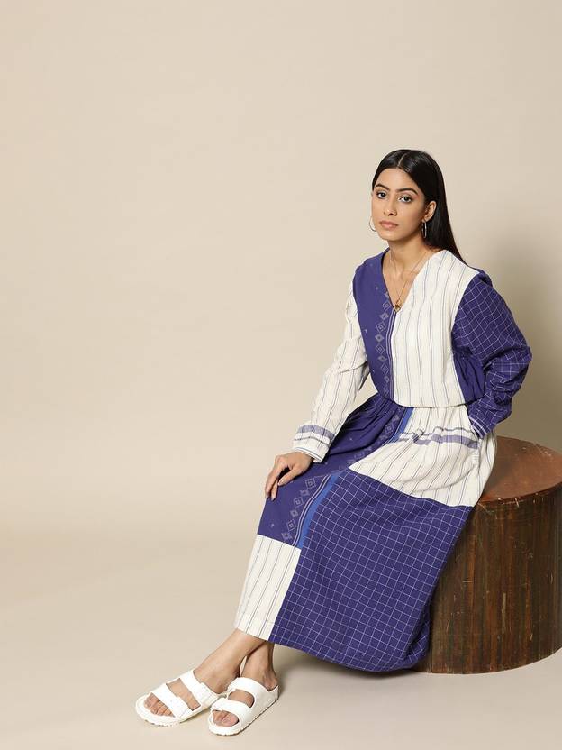 Blue & Off-White Jamdani Self Design Skirt, has partially elasticated waistband with slip-on closure, flared hem in midi length, 2 pockets Unique in Bower Casual but refined, this A line Midi Skirt features an flattering patchwork design cut from 3 different fabrics. Made from organic Cotton, it has an highlight of gathered waist and side pockets for your easy everyday use. We are committed to making a positive impact on the people who wear our clothes and our industry beginning with our consciously sourced fabrics from differnt clusters of India which focus on heirloom techniques. This dress is crafted from Cotton Dobby a textile of rich indian craftmenship.