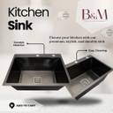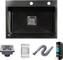 Bowlsandmore | 24" x 18" x 10" TAP-HOLE | KITCHEN SINK WITH SOAP DISPENSER & PVC BASKET | 24x18x10 TAP-HOLE |304 GRADE| HEAVYDUTY HANDMAD |SINKS 304 GRADE STAINLESS STEEL Vessel Sink (BLACK)