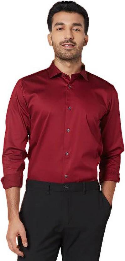 BOWRAIN Men Solid Formal Maroon Shirt