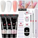 BOZLIN Poly Nail Gel Extension Kit for Builder Gel UV Nail Art Kit Nail Extension Set (Clear, Pink, White) (10 Items in the set)