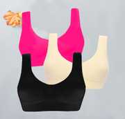 SLIP ON WIRELESS BRA: Our everyday broad strap cotton sports bra combo have an easy slip on design are made with soft, stretchable seamless fabric. You can wear it as one of the most comfortable crop top bra, gym workout bra or everyday yoga bra. Our solid and printed regular broad strap bra for girls and women can be worn under any clothing without additional slips. The Non-wired tshirt bra for women / t shirt bra for girls is specially designed to provide full coverage and great support. These beginners bra for women or bra with broad strap are designed with breathable cotton fabric to keep you cool, fresh and dry throughout the day.
