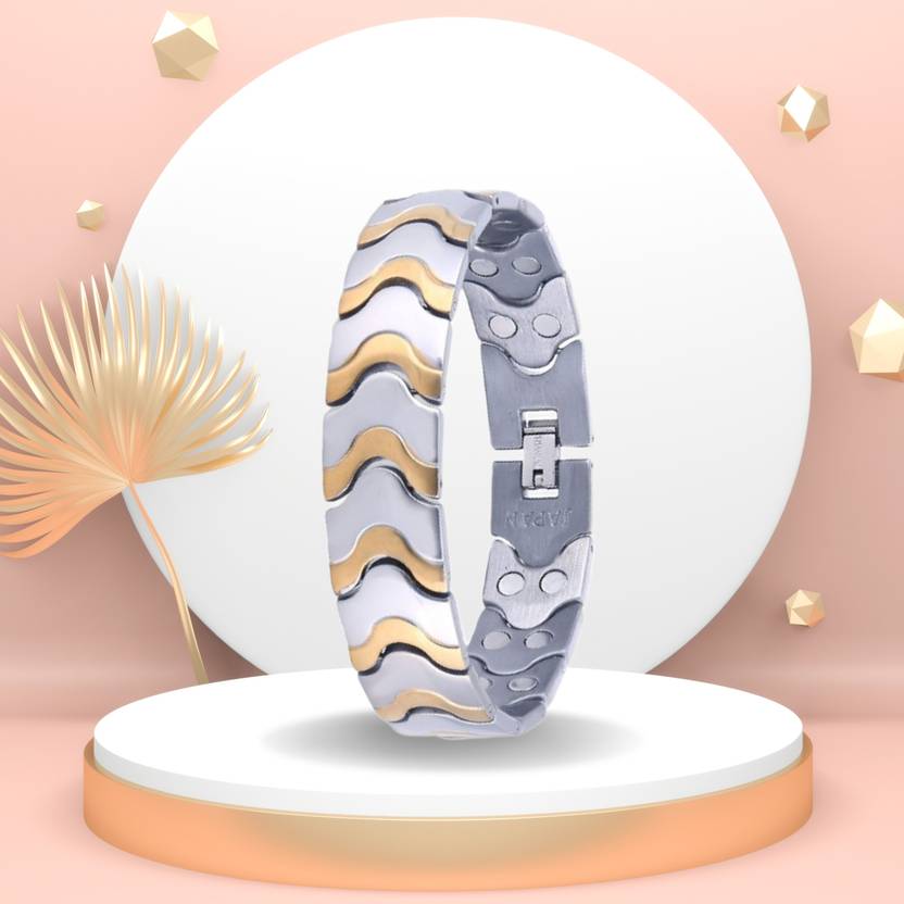 We Are Represent Our Brand Bracotive Bio Magnetic Bracelet ( Bp Control ) - can fit fat wrist also (flexible) Bp chain Very relaxing , keeps mind calm, patients Attractive.For Color fading issue – It is only Golden polish so it will get fade as per your uses.Pack of 2 Pis. This stylish BP bracelet combines functionality with fashion, designed to help regulate blood pressure through bio-magnetic therapy. Crafted from durable stainless steel, it features a sleek silver and gold polish finish, making it a versatile accessory for both men and women. The blood pressure bracelet is not only a health-conscious choice but also a trendy piece, suitable for daily wear. Its stainless steel chain ensures long-lasting quality while offering comfort and a modern, sophisticated look. Ideal for those looking to manage their health with style.