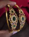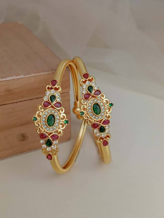 Enhance your ethnic elegance with this beautifully crafted 1 pair gold plated bangle, designed especially for women and girls who love timeless traditional jewellery. Embellished with high-quality American Diamonds (CZ stones), this bangle reflects a graceful sparkle that complements both festive and everyday outfits. The intricate detailing and smooth finish add to its rich, royal appeal, while the openable kada design ensures a comfortable fit for most wrist sizes. Whether paired with a saree, lehenga, or salwar suit, this single pair of bangles adds the perfect finishing touch to your look. Ideal for weddings, parties, religious functions, or gifting on special occasions, this bangle combines beauty, comfort, and traditional charm in one elegant accessory. Known as Kada, Chudi, Valayal, or Bale in different regions, this piece is a must-have for every jewellery collection.