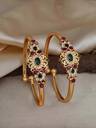 Traditional temple jewellery style bangle, Smooth inner surface for comfortable wear, Anti-tarnish gold plating for longer shine, Hand-polished finish for a premium look, Suitable for all age groups – women & teenage girls, Complements sarees, lehengas, salwar suits, and festive attire, Can be paired with other bangles or worn solo, Pack contains 1 pair (2 pieces) of bangles