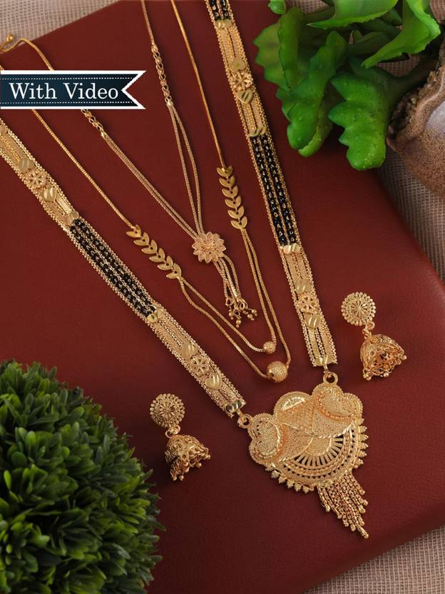 The base material of this mangalsutra is brass which ensures it lasts a long time. You can get this product as this brass ornament is gold plated to make you look aesthetically appealing and elegant. The ornament is 76.2 centimetres in length, giving you a dressy look. Read the care instruction for this brass jewellery to ensure its durability.
